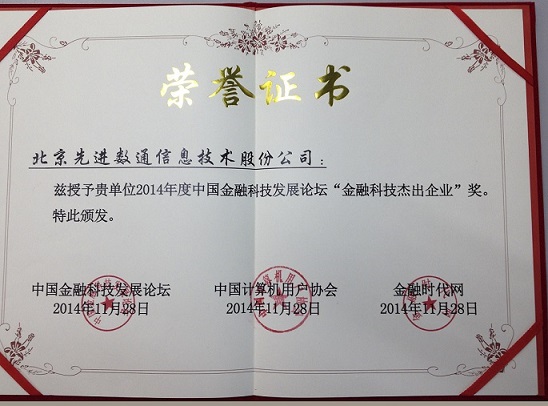 乐鱼官网数通荣获2014年度十大金融科技杰出企业称号