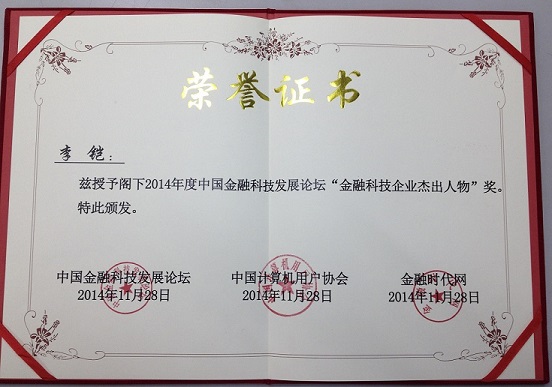 11月28日,2014年度中国金融科技发展论坛在京成功举办。北京乐鱼官网数通信息技术股份公司应邀参会,并荣获“2014年度十大金融科技杰出企业”,董事长李铠先生获评“2014金融科技杰出人物”。本届论坛由中国计算机用户协会、金融时代网联合主办,吸引了200余位来自金融管理机构、银行、证券、保险等领域的科技工作者和业界专家。