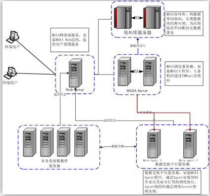 长安汽车在数据交换平台建设的过程中技术难题不断出现:数据交换平台涉及集团各业务平台,系统接口繁杂,接口参数难于管理,需要及时传输数据,数据交换作业要循环执行,整个平台的任务并发量难以控制,处理服务器存在配置差异,任务的均衡分配受到挑战。为此,长安汽车与乐鱼官网数通公司合作,引入调度产品MOIA作为数据交换平台的调度核心,采用iMOIA.SMS调度监控管理系统方案。该系统实现了资料数据库、数据交换平台、业务系统数据库三网融合,最大可能的满足数据交换平台的高速通讯需要。