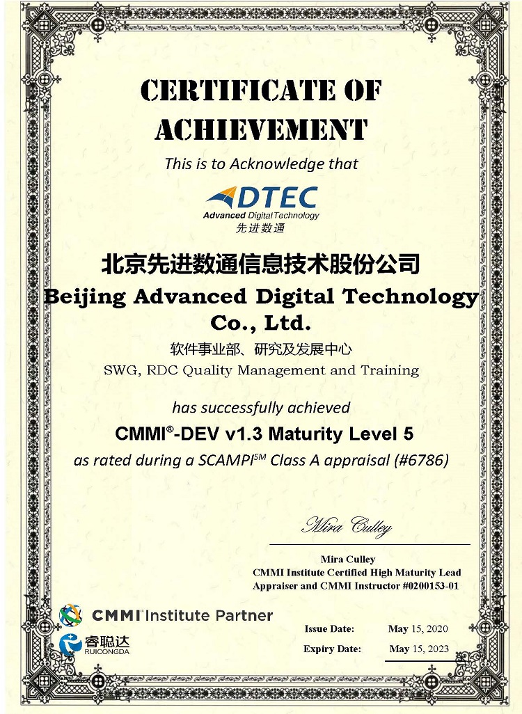 经过积极筹备和艰辛实践,乐鱼官网数通于2020年5月15日通过了CMMI Level5软件能力成熟度评估,这标志着公司建立了一套标准化、制度化的软件开发项目管理流程,以保障项目的按期交付及完成质量。本次评估涉及软件开发、项目管理、人力资源等领域,是乐鱼官网数通在软件开发领域达到高成熟度水平和能力的有力印证。
