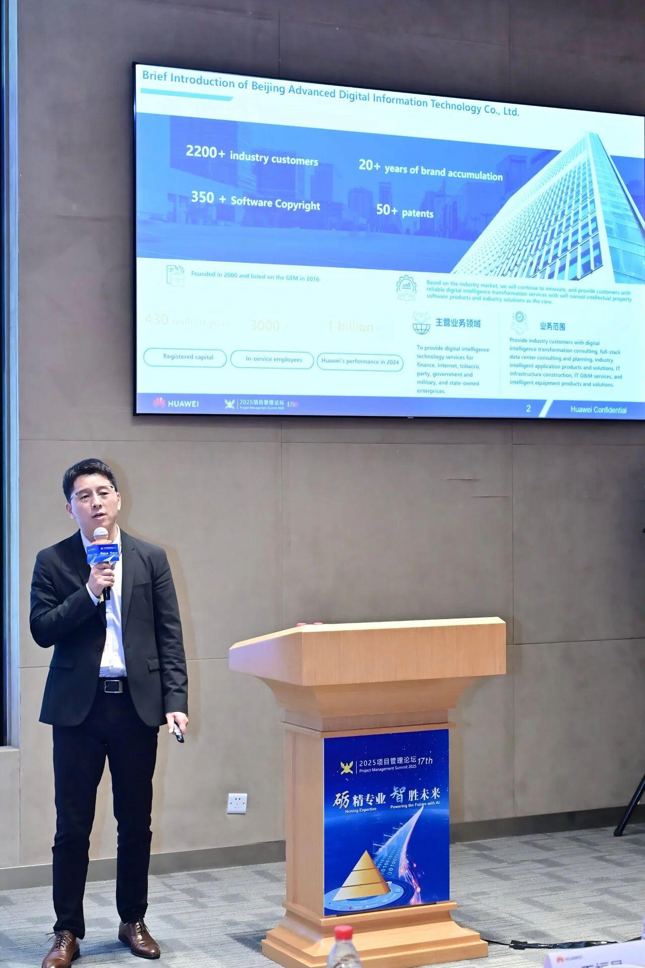 近日,以“畅销专业 智胜未来”为主题的2025项目管理论坛在深圳坂田华为培训中心成功举办。本次论坛聚焦“对准价值、以质筑基、以智慧能、以志领航、全场景作战成功”等核心议题,现场汇聚了业界专家、全球客户、生态伙伴及华为项目核心成员等约300人,华为全球线上直播约3000人,共商智能时代下的项目管理新范式。北京乐鱼官网数通信息技术股份公司(以下简称“乐鱼官网数通”)受邀出席了本届盛会,并由乐鱼官网数通服务总监朱存凯先生代表公司发表主题演讲。